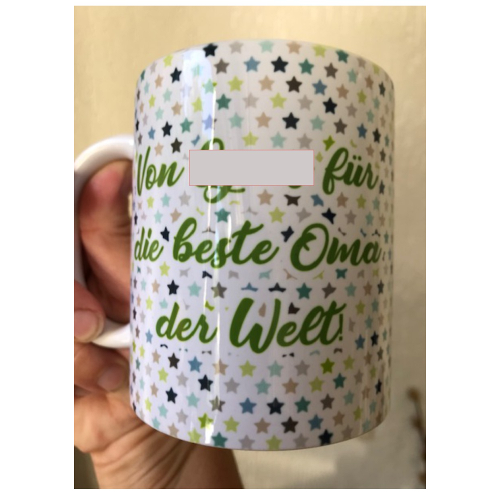 De foto/foto's worden in de beker gebrand waardoor de beker vaatwas bestendig is.