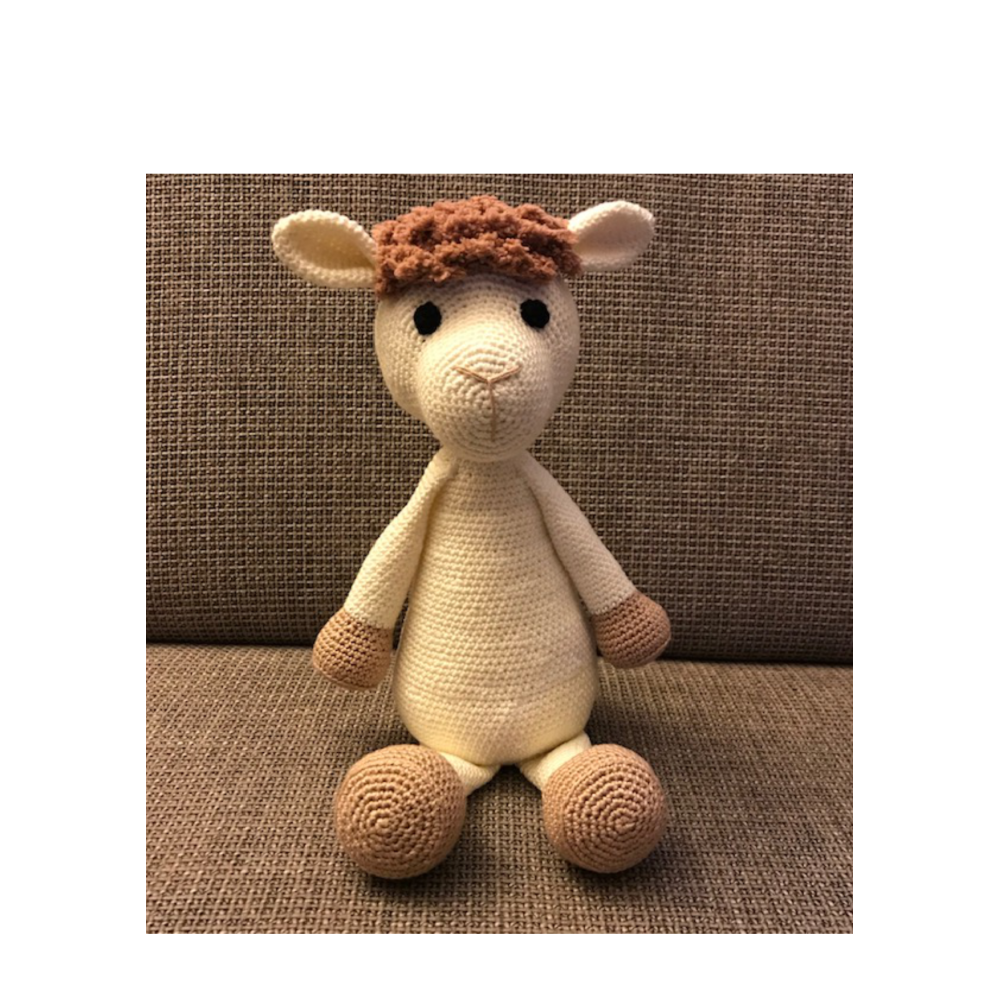 Deze knuffel lama is op verzoek gemaakt, hij is ongeveer 30 cm groot.
