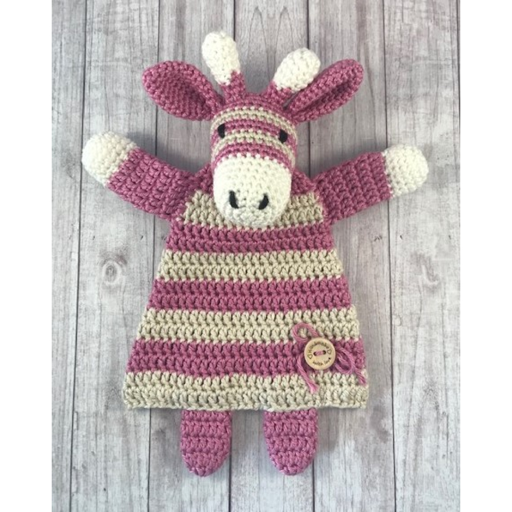Dit knuffeldoekje is gemaakt van 100% katoen en heeft opgenaaide oogjes en een snuitje.