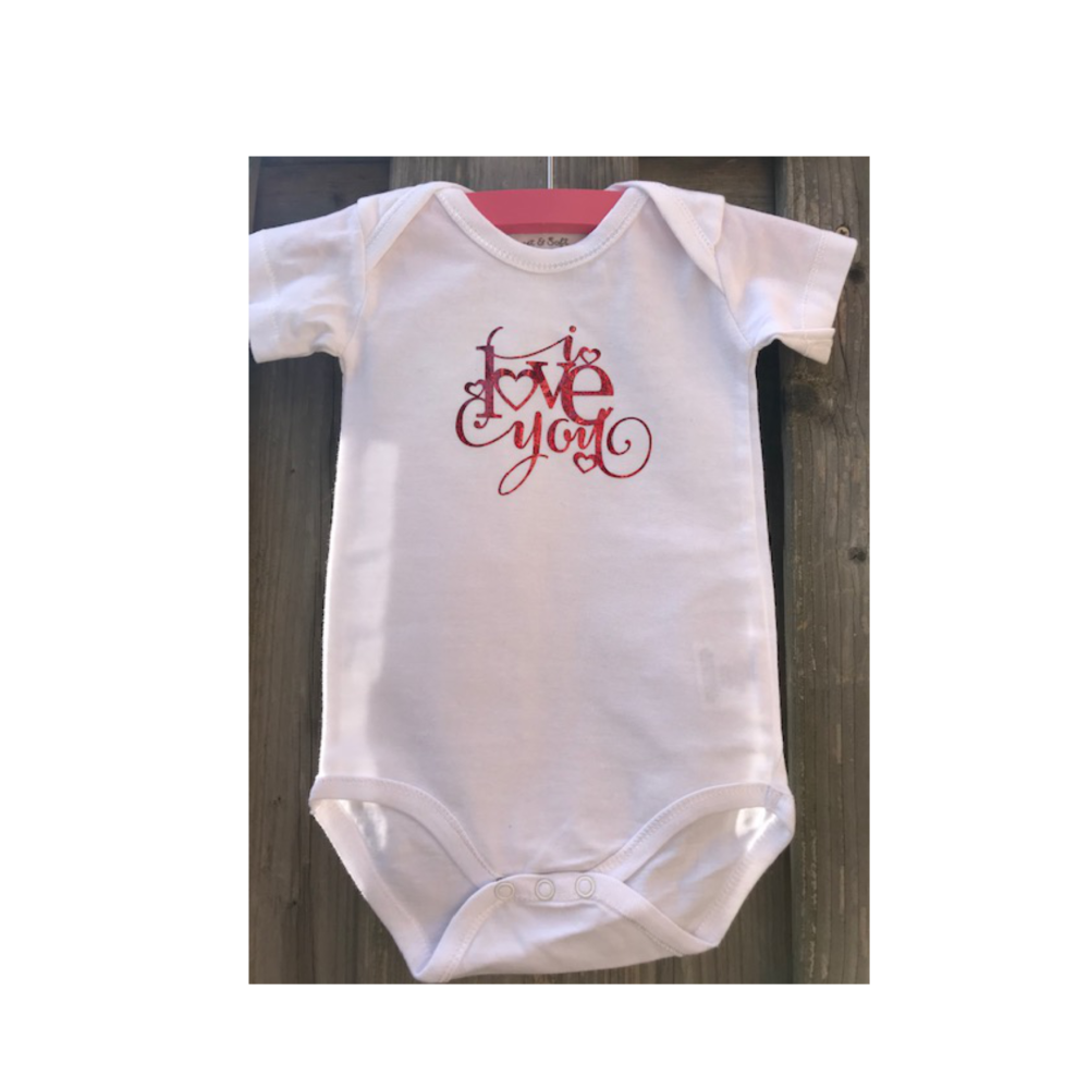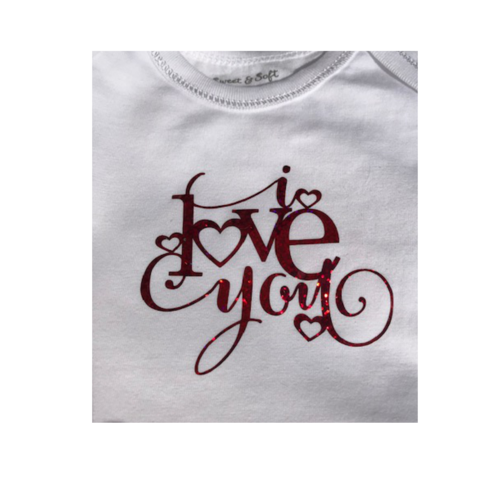 Deze romper heb ik alleen nog maar in de maat 62/68. De tekst is met rood glitter, helaas komt dat niet zo goed over op de foto.