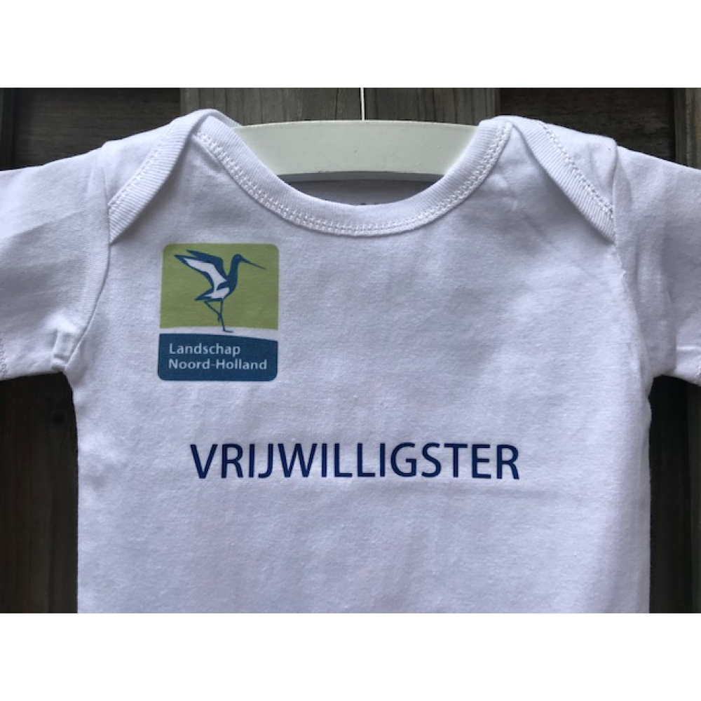 Deze romper is op verzoek gemaakt voor de geboorte van een dochter van een vrijwilliger van het Landschap Noord-Holland.